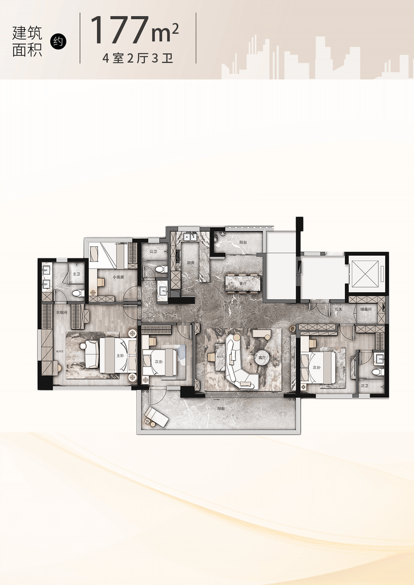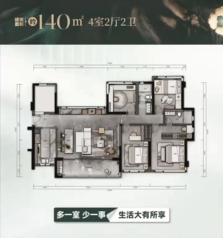 更别提像建面约177㎡如许的顶奢大宅,专梯入户,从阳台开间超9米,连糊口阳台都有近5米长,比市道常规四房从阳台都要豪阔。