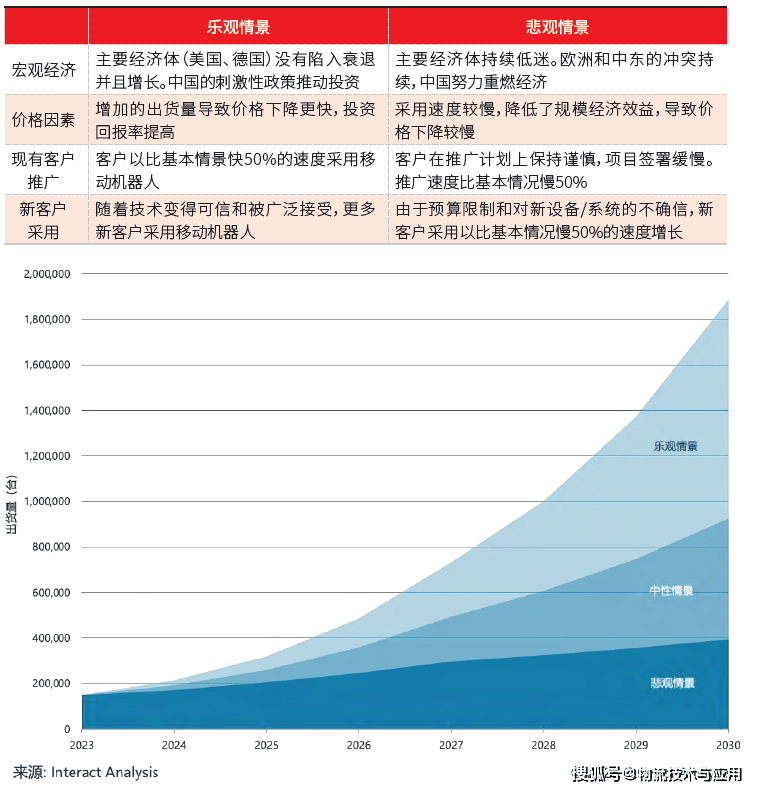 虽然短期预测变得更隆重,但瞻望到2030年,挪动机械人市场仍有两位数的年增加潜力。为此,IA建立了乐不雅、中性和悲不雅三种不怜悯景的市场预测(见图1)。正在最为乐不雅的预测情景中,到 2030年,全球挪动机械人出货量有可能接近200万台。